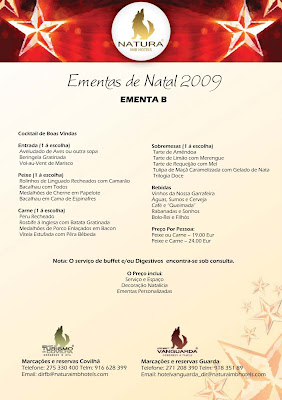 Clique para conhecer a Ementa A e B que o Hotel Turismo da Covilhã e Hotel Vanguarda prepararam para o seu Natal 2009.